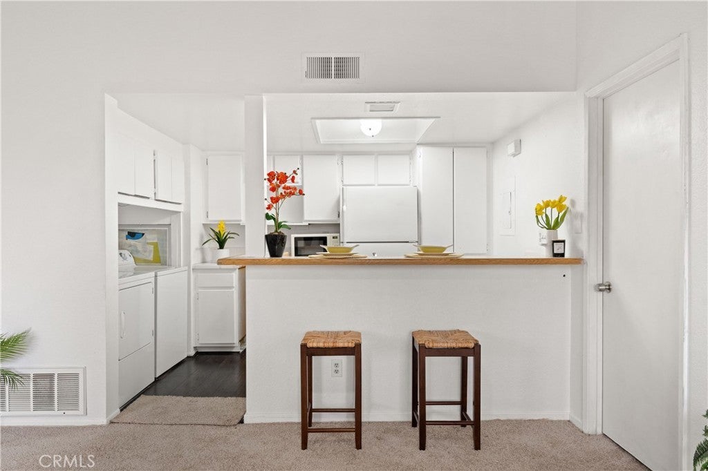 HUGE PRICE REDUCTION!! Come see your new home at Las Palmas Community in one of the safest city of Mission Viejo. PRIME LOCATION unit with panoramic views. It is an upstairs condominium, vaulted ceilings, with two bedroom and two full bath, each bathroom has a window. Freshly painted, new carpet and Kitchen cabinets are upgraded and freshly painted, bathroom floors have new laminated floors. The bedrooms are on separate corners, giving a sense of privacy. Family room has, new carpet, high vaulted ceilings, two large double slide windows with plenty of sunlight. All bedrooms with large windows. Patio with view of the Saddleback mountains and neighborhood street. Park in a carport with double door storage and 1 assigned parking spot. The condo is conveniently located near the Community Pool and spa. Water and Trash are included in the Association dues, the only utility you pay is electricity. Mission Viejo lake is a few blocks from the Community. Access to all the Lake amenities including fishing, boating, kayaking, summer concerts, family picnics, dog park and parks within walking distance, running trails, excellent school district, close to Saddleback College and a few minutes from Laguna beach.