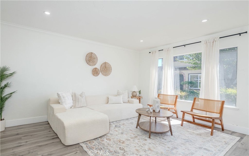 Experience modern living in this beautiful two-story townhome in the vibrant Bishop Place Townhome community, located in the heart of Little Saigon. The fully renovated interior in 2024 was designed for comfort and style. This home features three spacious bedrooms and two and a half beautifully appointed bathrooms. Step inside to discover an inviting atmosphere enhanced by rich wood laminate flooring that flows seamlessly throughout the space. Elegant crown molding and baseboards add a touch of sophistication, while recessed lighting creates a bright and airy ambiance. The modern kitchen and bathrooms showcase luxurious quartz countertops, making them not only functional but visually striking. The primary suite is a true retreat, featuring generous space and an en suite bathroom that boasts a large walk-in shower, perfect for relaxation. The two additional bedrooms offer versatility for guests, family, or a home office. Storage is never an issue with ample space available under the stairs, allowing you to keep your living areas clutter-free. An enclosed private patio is the perfect spot to sip your morning coffee, unwind after a long day or enjoy Al Fresco dining with guests. The community amenities are a highlight, featuring a refreshing pool, soothing spa, lush green belts, tennis courts, and a welcoming clubhouse. Plus, sewer and trash services are included in the HOA fees. Nestled near excellent schools, diverse shops, and efficient public transportation options, this home delivers both accessibility and lifestyle and is not just a place to live—it’s a place to thrive!