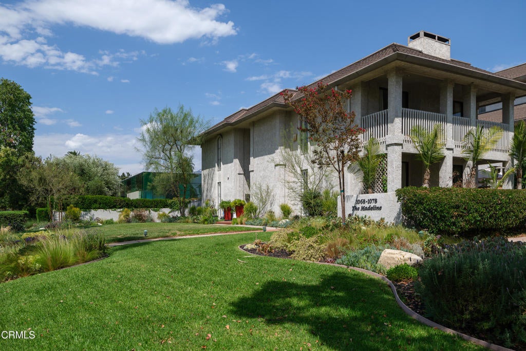 A rare luxury find nestled on the corner of Orange Grove and Madeline Drive, this freestanding residence offers the privacy and feel of a single-family home with the convenience of luxury condominium living. With no shared walls, timeless architecture, and expansive indoor-outdoor spaces, this one-of-a-kind property is an entertainer's dream in one of Pasadena's most sought-after locations. Lush and vibrant landscaping leads you to the front door, where, beyond the grand front entry, hardwood floors lead into elegant living and dining rooms adorned with crown and chair rail moldings. A gas fireplace with a stone hearth and classic white mantle creates a warm focal point in the living room, where dual glass sliders open to a private side patio. A built-in wet bar adds ease for entertaining, while the dining room seamlessly connects to the patio. The gourmet kitchen impresses with stone counters, a custom backsplash, a farmhouse sink, a 5-burner Samsung range, dishwasher, and breakfast nook with sliding doors that open to the back patio oasis. The flexible floor plan includes a downstairs bedroom (currently used as an office/den space) and an adjacent stylish 3/4 bath. Upstairs, two well-sized bedrooms share access to a generous balcony, while a beautifully updated bathroom features a custom-tiled shower and dual vanity. The spacious primary suite offers a walk-in closet and a spa-inspired ensuite with dual sinks, stone counters, and an oversized shower with bench seating. The crown jewel is the expansive 1,700+ sq ft private back patio, complete with stone tile, pergola-covered lounge areas, a fountain centerpiece, and ample room for al fresco dining or sun-soaked relaxation. Additional highlights include indoor laundry, secured subterranean parking and abundant closet and storage spaces, including a private locked storage room. Perfectly situated along Pasadena's famed South Orange Grove corridor, this residence not only delivers refined living but also front-row access to the iconic Rose Parade. A truly rare opportunity to own a stand-alone luxury home in one of Pasadena's most prestigious settings.