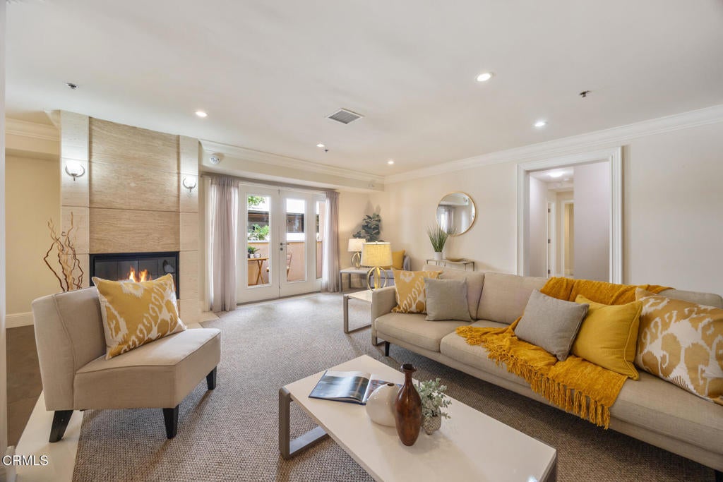 Luxury Living in the Heart of Pasadena's South Lake DistrictWelcome to a truly exceptional offering--this luxuriously renovated, single-level condo in one of Pasadena's most desirable and walkable neighborhoods. With 3 generously sized bedrooms, including two elegant primary suites, and 3 beautifully appointed bathrooms, this residence blends timeless sophistication with modern comfort.Each primary suite enjoys direct access to its own private balcony, offering a serene setting to unwind or take in the fresh air. Inside, the chef's kitchen is outfitted with rich maple cabinetry, sleek quartz countertops, and flows seamlessly into a formal dining area illuminated by a classic chandelier--perfect for entertaining in style.The spacious living room impresses with a dramatic floor-to-ceiling stone fireplace, crown molding, and recessed lighting throughout, creating an atmosphere of warmth and refinement. A separate library, den, or office with hardwood floors offers flexibility for work or quiet retreat.At the heart of the home, you'll find expansive central balconies, ideal for dining al fresco, hosting guests, or enjoying a peaceful morning coffee. A convenient in-unit laundry area enhances everyday ease.This well-maintained, secure building features elevator access and includes two assigned, side-by-side parking spaces in the gated garage for added convenience and peace of mind.Located just moments from the vibrant South Lake Avenue District, this home is surrounded by the area's most popular destinations, including SUGARFISH, Smitty's, UOVO, Green Street Restaurant, and Williams Sonoma. Easy access to Caltech, the 210 Freeway, and the Metro Gold Line makes commuting effortless.If you've been searching for the perfect blend of luxury, location, and lifestyle, your opportunity has arrived.