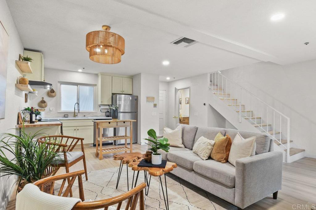 Welcome home! This 2 bedroom, 2.5 bathroom property in La Mesa has a townhouse style layout is sure to impress! End unit with only one shared wall. Downstairs you have an open concept living/dining/kitchen area as well as a 1/2 bath. The unit also boast a private front patio area as well as a back balcony. Upstairs, you’ll find a full size stackable washer/dryer, ample closet space and TWO master bedrooms. That’s right! Both bedrooms have their own private ensuite bathrooms. With beautiful updates throughout such as solid surface flooring, dual pane windows, newer kitchen cabinets, stainless steel appliances, stone countertops, and remodeled bathrooms, this house has turn key. It even has central heating/air and a 2 car garage!!! Situated in a small nine unit community, with easy freeway access, and about half a mile from Lake Murray, the location is ideal! Complex is VA approved too! Contact listing agent about special financing opportunities, closing cost credits and rate buy down options! Seller has a 5.25% VA assumable loan!