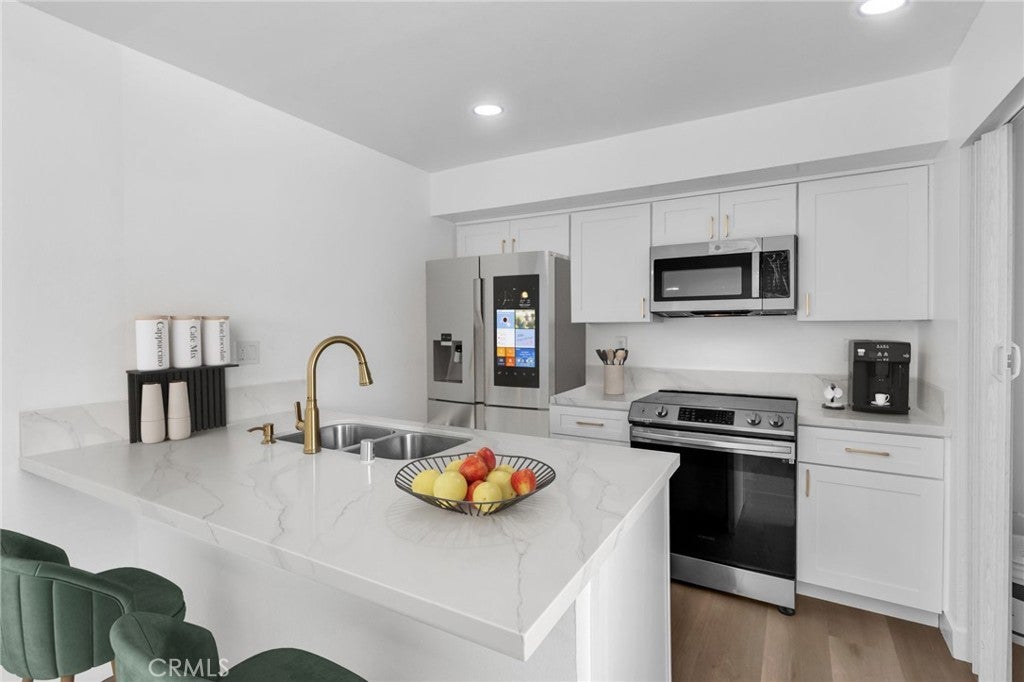 Turnkey & Move In Ready, Upgrades at this price = rare opportunity. Don’t wait! Ground-level (no stairs) 2BR/1BA condo with new laminate flooring, dual pane vinyl windows, remodeled kitchen featuring quartz countertops with modern gold finishes, recessed lighting throughout, and NO popcorn ceilings creating a bright and inviting living space throughout. The HOA covers water, trash, hot water and water heater maintenance — keeping monthly costs low. Excellent for first-time buyers and savvy investors looking for a rent-ready property. Don't miss this opportunity to own a beautiful, low-maintenance home that offers comfort, style, and value. Seller will cooperate with down payment assistance programs, and may consider some help with closing costs.