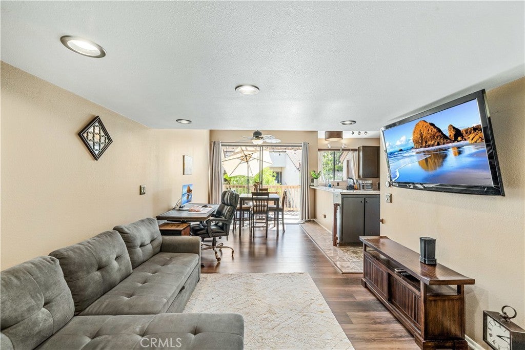 **Charming Loft-Style Condo in a Tranquil Lakeside Community – Perfect for First-Time Homebuyers!** Welcome to your dream starter home! Nestled in a beautifully landscaped gated community, this fantastic 1-bedroom, 1-bathroom loft-style condo is the perfect blend of comfort and style. With its high ceilings and floor to ceiling windows, this two-story gem is drenched in natural light, creating an inviting atmosphere you'll love coming home to. Step inside and be greeted by a spacious layout that maximizes every inch of space. The open-concept living area seamlessly connects to a good-sized kitchen, featuring stunning granite countertops, ideal for whipping up your favorite meals or entertaining guests. Convenience is at your fingertips with an indoor washer and dryer closet, making laundry days a breeze. Retreat to your cozy bedroom loft complete with skylight, privacy, ample closet space, ensuring you have room for all your belongings. The full bathroom boasts modern low-flow shower heads, contributing to both sustainability and comfort. But that's not all! Step outside onto your private balcony where you can sip your morning coffee while overlooking serene fountains, tranquil streams, beautiful Koi fish, turtles and ducks in ponds. This peaceful oasis allows you to unwind after a long day or enjoy a quiet evening under the stars. The community amenities are exceptional, featuring not one, but two full-size gated swimming pools and a rejuvenating spas. Whether you want to take a refreshing dip or relax in the warm bubbling waters, your leisure time is well catered for. Centrally located, this condo is just a short stroll away from paved bike paths, walking areas and park, perfect for outdoor enthusiasts. You're minutes away from the Historic Garden Grove Main Street, offering a delightful mix of shops, cafes, restaurants and local attractions. Plus, you'll appreciate the convenience of nearby Costco/Gas, Home Depot and other essential shopping destinations. Additional benefits include a new SPC (stone plastic flooring) with superior durability, new water heater, new water filtration system, multiple storage closets and a dedicated garage space for your convenience. Don't miss the opportunity to own this exceptional condo in a peaceful and friendly community. This is not just a home; it's a lifestyle. Schedule your private tour today and envision your life in this beautiful condo!