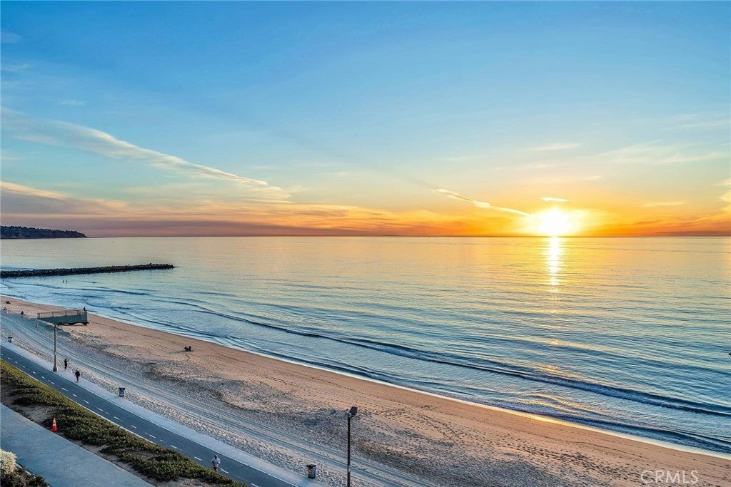 Welcome to your seaside sanctuary. This rare, 7th-floor oceanfront suite features southwest-facing exposure that provides the closest possible views of the ocean while still maintaining two outdoor patio balconies. This 2-bedroom, 2.5-bath stunner is the ultimate seaside retreat, featuring rich wood floors, a sleek galley kitchen with granite counters, stainless appliances, and an open layout that brings the ocean right into your living space. Step out onto your private balconies to soak in sunsets, spot dolphins, and savor the coastal lifestyle. The inviting second level features new hallway chandelier and lighting, a spacious primary bedroom accompanied by its own en-suite bath, walk-in closet and floor to ceiling sliding doors to access your balcony and capture the amazing ocean views and beautiful sunsets. The guest bedroom with its own bath is also on this level with floor to ceiling glass doors that access the balcony. Two car tandem secure parking in garage & storage for your coastal adventures. Ocean Plaza is a gated community with amenities that include direct access from the garage down to the beach and bike path, an outdoor swimming pool, spa, sauna, exercise gym, a clubhouse and a party/event room. South Redondo renowned beaches, charming shops, and gourmet dining options are just a stroll away. With its prime beachfront location this property offers a rare opportunity for seaside living at its finest.