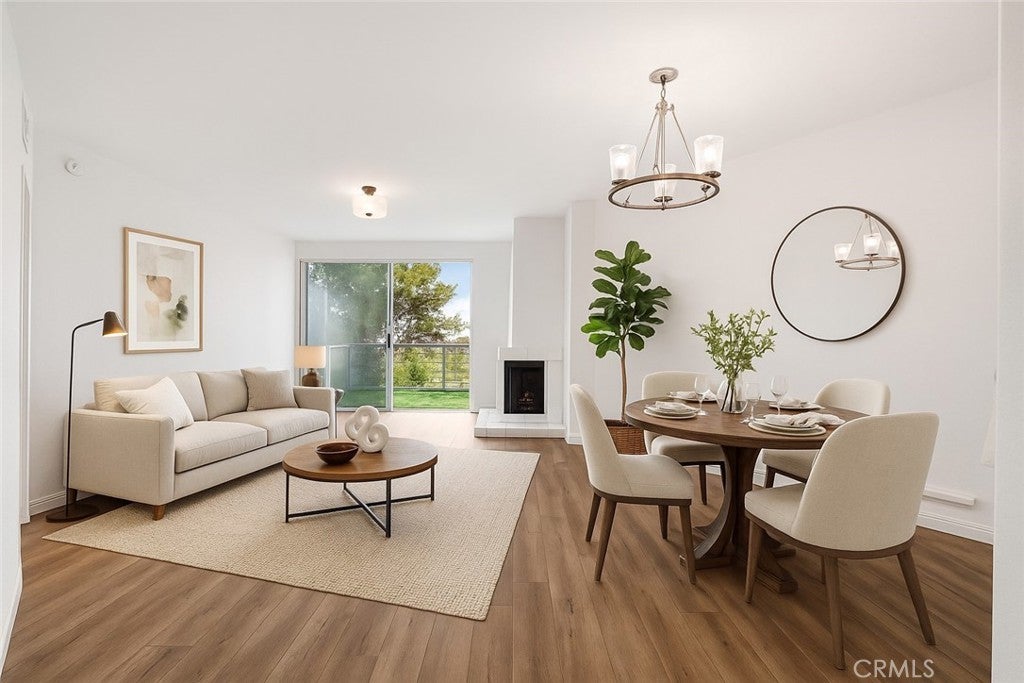 Step into a space that instantly feels like home. This beautifully upgraded, spacious single-story condo offers a bright, thoughtfully designed living space filled with natural light and timeless comfort. Live the simple life with functionality and ease. When you enter, you are welcomed into an inviting living room anchored by a cozy gas fireplace, perfect for relaxing or entertaining. The kitchen features sleek quartz countertops, abundant cabinetry, and generous prep space. It flows seamlessly into a spacious dining area for casual meals and special gatherings. Elegant lighting, freshly painted walls, and newer flooring enhance the ambiance and add a touch of modern sophistication. While tax records reflect the home as having 2 bedrooms, a versatile enclosed bonus room used as a third bedroom adds flexibility for a home office or creative retreat. Whether you need a quiet workplace, a cozy reading nook this space adapts to your needs. Step out onto your private balcony and enjoy morning coffee among the treetops or unwind in the evening with stunning sunset views of the mountains, sparkling city lights, and even fireworks on special nights. It is a peaceful outdoor escape that brings nature and serenity to your doorstep. The primary suite offers a retreat with ample space, double closets, and an en-suite bathroom with dual sinks, a soaking tub, a separate shower, and a large vanity. The updated hall bathroom features a modern vanity and finishes that offer style and everyday function. Additional highlights include AC, in-unit laundry, hallway storage, and a convenient wet bar, ideal for entertaining or keeping your favorite beverages on hand. Located in a secure, gated community at the end of a peaceful cul-de-sac, residents enjoy fun amenities including a sparkling pool, spa, gym, barbecue area, and a recreational room with a billiard table. Lush landscaping and walking paths create a resort-style environment where neighbors can gather, relax, and feel at home. Two side-by-side parking spaces in a gated garage, no steps from parking to the unit, a personal storage closet, and plenty of guest parking provide added convenience and security. This ideal location is just minutes from shopping, dining, parks, top-rated schools, and freeway access. Whether looking for quiet comfort or vibrant community living, The Terraces offer a unique blend of comfort and community in a home rarely available in this desirable neighborhood. Do not miss out!