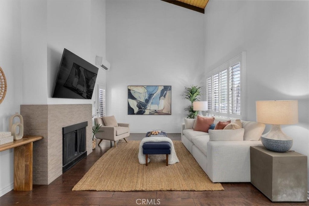 A rare offering! This top-floor 985 sq ft unit boasts the highest ceilings in the coveted Windsor Fountains community in Culver City. Step inside to an inviting open layout with a dining area and living room highlighted by soaring vaulted ceilings and a decorative fireplace. The kitchen features Caesarstone countertops, freshly painted cabinets, a custom backsplash, a newly reglazed sink, and recessed lighting. Down the hallway, you’ll find the updated bathroom with a skylight and new light fixture. The spacious primary bedroom includes a custom California Closet walk-in, built-in wall safe, and access to the private balcony. Upstairs, the loft offers a flexible space - ideal for the second bedroom, an office, or hangout area. Enjoy year-round comfort with three mini-split A/C and heating units located in the loft, living room, and primary bedroom. Additional highlights include wood flooring, white window shutters, and two tandem covered parking spaces. In-unit washer and dryer installation is permitted with HOA approval, and HOA dues cover all utilities except electricity and cable/internet. Windsor Fountains offers a wide range of amenities, including a pool, spa, tennis courts, clubhouse, recreation room, laundry facilities, landscaped grounds, and onsite management. Conveniently located near the Ballona Creek Bike Path, Downtown Culver City, One Culver, boutique shops, and restaurants - and within the highly rated Culver City School District. This is truly a must-see!