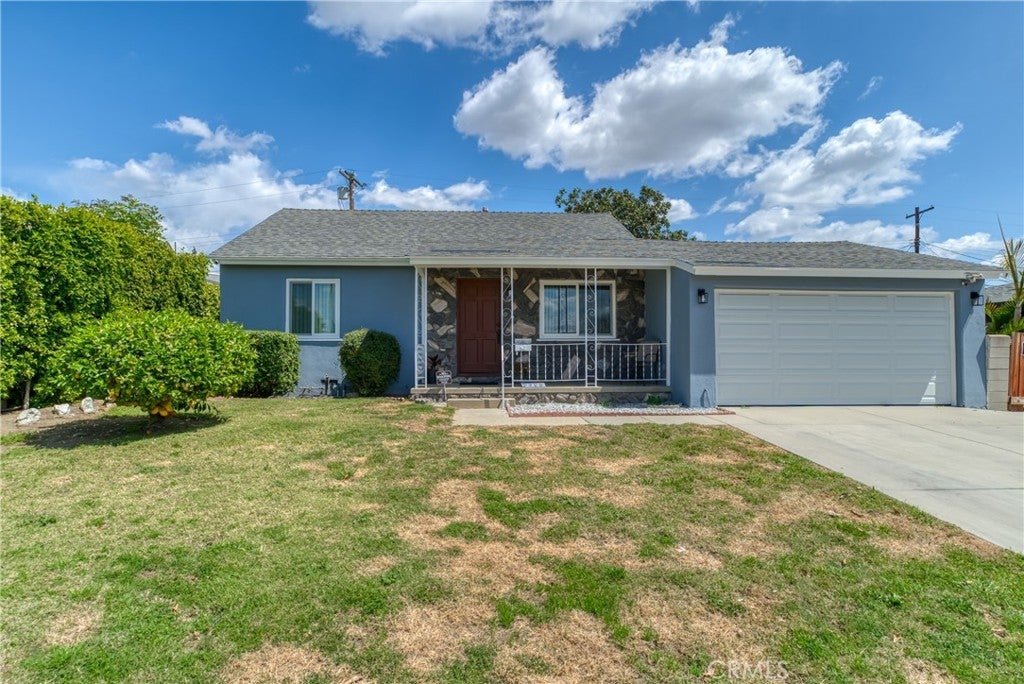 Welcome to this charming 2-bedroom home, perfect for 1st time home buyers or investors! This inviting home features a living room with a large newer window and original hardwood flooring. There is a spacious bonus family room (which could be a 3rd bedroom), complete with a cozy fireplace and mini split AC. The kitchen is enhanced by a newer sliding glass door, which floods the interior with natural light and provides seamless access to the inviting spacious backyard with a patio. This outdoor space is perfect for entertaining or enjoying morning coffee in the fresh air. Both bedrooms are located at the end of the hallway and share a full bath. The main bedroom has newer windows and the 2nd bedroom has a newer mini split AC Additional highlights include a convenient driveway leading to a spacious 2-car garage, Newer garage door and motor, offering ample parking and storage solutions. Laundry is located in the garage. Enjoy your 2 lemon trees and the freshly painted outside. Don't miss your chance to make it yours!