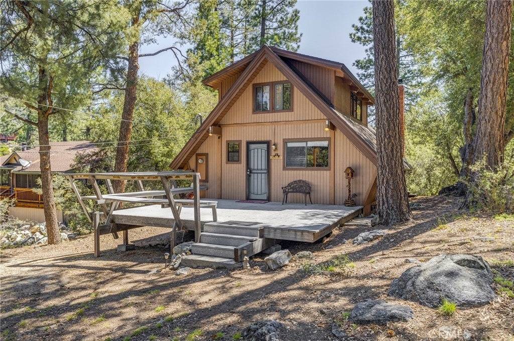 NEWLY PRICED, FULLY FURNISHED, DON'T MISS THE OPPORTUNITY!! Whimsical Mountain Chalet with Floor-to-Ceiling Forest Views and Dual Decks in a Private Cul-de-Sac! Escape to the serenity of mountain living in this charming 2-bedroom, 1.5-bath, 920 sq ft cabin nestled on a 10,733 sq ft lot that backs to a protected greenbelt forest. Tucked away on a peaceful cul-de-sac, this whimsical woodland retreat offers stunning floor-to-ceiling views, rustic elegance, and a true sense of privacy. Step into a bright and airy living space featuring soaring wood-beamed ceilings and expansive windows that bring the lush outdoors in. A cozy brick fireplace serves as the heart of the home during cooler months, while the open-concept kitchen provides the perfect setup for scenic cooking and effortless entertaining. The living and dining areas open out to two oversized decks—east and west facing—each with built-in seating, ideal for morning coffee, evening BBQs, or stargazing under clear mountain skies. The main level features a spacious guest bedroom, full bathroom, large pantry, and generous storage. Upstairs, the inviting primary suite boasts treetop views, beautiful natural light, and its own private half bath. Sold fully furnished and newly priced, this cabin is move-in ready—just bring your bags and settle into mountain life. Whether you're seeking a full-time home, creative hideaway, or weekend escape, this distinctive retreat checks all the boxes. Just minutes from Pine Mountain Club village amenities—yet worlds away from the rush. Schedule your private tour today!