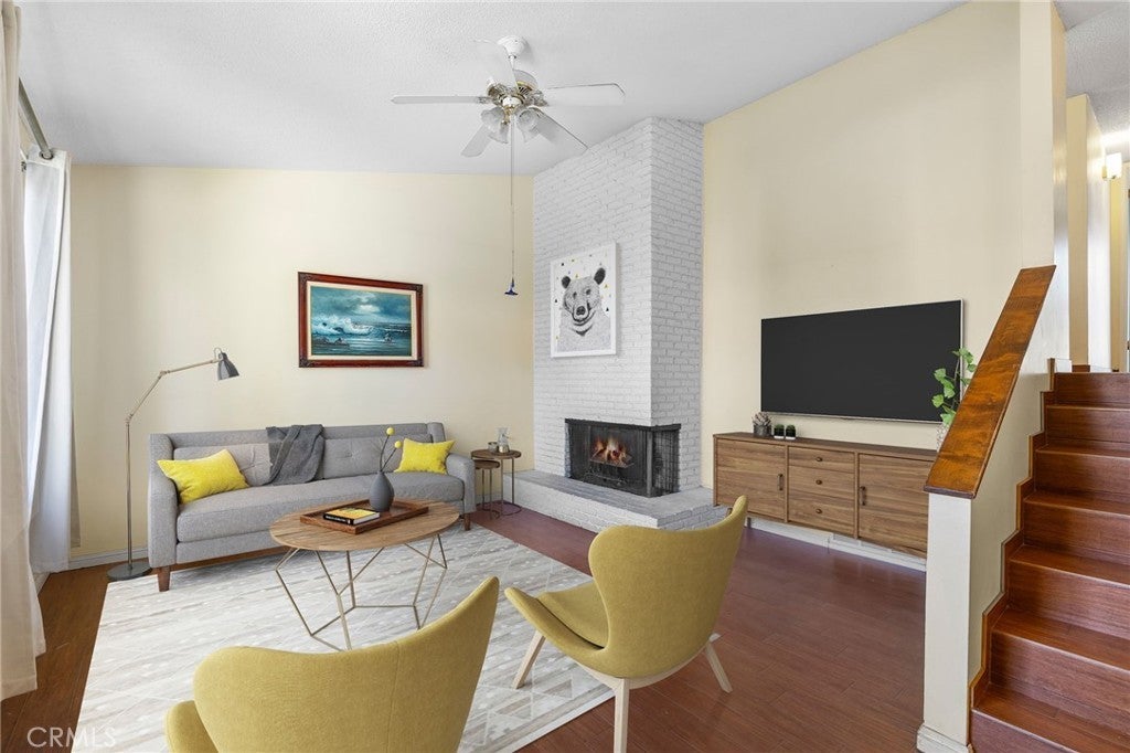 Ideal condo near Bakersfield College with HOA-covered amenities including landscaping, pool, roof, exterior paint, pest control, insurance, water, trash, and professional management! Located just 1.8 miles from BC with easy Hwy 178 access, plus a coffee shop and dining within walking distance—perfect for students, first-time buyers, or investors. This desirable end unit offers added privacy with only one shared wall, a new roof, and a 2-car attached garage for convenience and secure storage. The living room features a striking floor-to-ceiling brick fireplace, wood-look tile flooring, and abundant natural light. The kitchen includes warm wood cabinetry, bar-top seating, and neutral tile finishes. Upstairs, the spacious primary suite boasts its own private balcony and a beautifully tiled shower, while the second bedroom also enjoys balcony access. A jetted tub in the hall bath adds a relaxing touch. This is a smart buy in a great location—schedule your tour today!