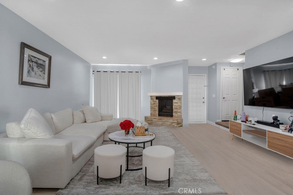 Priced to Sell!!! This beautifully updated townhome in a boutique 5-unit complex offers the perfect blend of style, comfort, and convenience with a thoughtful layout. The first floor welcomes you with an open-concept living and dining area featuring elegant laminate flooring, recessed lighting and fireplace. Sliding glass doors open to a private patio—perfect for indoor-outdoor entertaining. The remodeled kitchen is a chef’s dream with shaker-style soft-close cabinets and drawers, quartz countertops, a double sink with modern faucet, and stainless steel appliances including a gas stove, built-in microwave, and dishwasher. A stylish half bath completes the main level, ideal for guests. Upstairs, the spacious primary suite boasts vaulted ceilings, two large double closets, an inviting alcove perfect for a home office or reading nook, and access to the balcony. The full bathroom offers a separate tub and shower, granite-topped vanity, generous cabinetry, and an additional double closet. A full-size stackable washer and dryer and a linen closet are conveniently located just outside the primary suite. Additional features include two assigned tandem gated parking spaces, two storage cabinets, and access to a community patio with BBQ area. HOA dues cover earthquake insurance, water, sewer, and building hot water. Ideally located near the Van Nuys/Sherman Oaks Recreation Center with tennis courts, athletic fields, and a pool. Just minutes from Trader Joe’s, Westfield Fashion Square, and the vibrant restaurants and nightlife of Ventura Blvd—with easy access to the 101 and 405 freeways.This turnkey townhome has it all—style, space, and a location that can’t be beat!