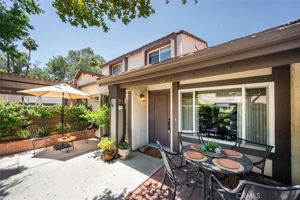 Charming 3-bedroom townhome in the highly sought-after Valencia Fairways community. This updated 2-story unit offers the perfect combination of character and modern convenience, with no neighbors above or below and an attached 2-car garage. Inside, you'll find fresh designer paint, luxury vinyl flooring, newer carpet and baseboards, dual pane vinyl windows, and custom window treatments. The kitchen features white cabinets and newer stainless steel appliances, and all bathrooms have updated vanities and toilets.