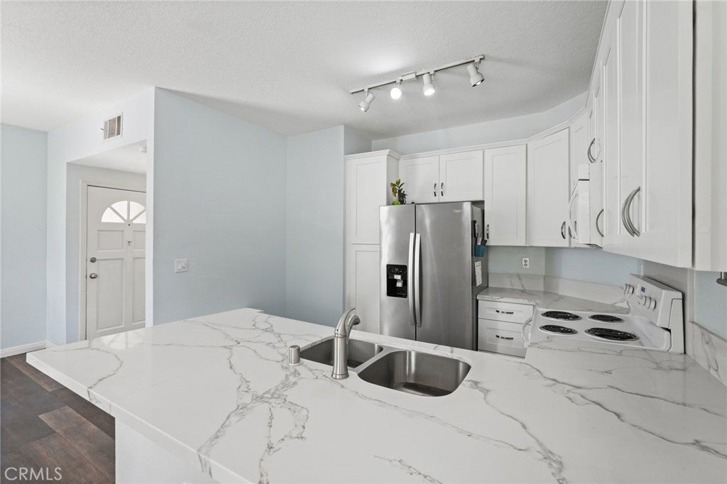 This turnkey single-story, 1st floor condo at 2426 Pleasant Way, Unit E, Thousand Oaks, CA 91362 offers 2 bedrooms, 1 bathroom, and 907 square feet of thoughtfully designed living space and a brand new HVAC! The open kitchen features white cabinetry, quartz countertops, stainless steel refrigerator, dishwasher, microwave and electric oven. The kitchen flows seamlessly into the living and dining areas, providing an ideal layout for everyday living. The spacious primary bedroom includes a generous walk-in closet and sliders providing direct access to the patio. The second bedroom offers flexibility for guests or a home office. Additional highlights include a well-appointed bathroom, in-unit washer and dryer, fireplace and central air conditioning. Step outside to a private wrap-around patio overlooking a lush park setting. Community amenities include a pool, spa, and beautifully maintained common areas. HOA dues cover water, sewer and trash service for added convenience. The neighborhood park is directly across the street, enhancing the indoor/outdoor enjoyment of this lovely home. Situated in a prime Thousand Oaks location, the home is close to The Oaks Mall, Janss Marketplace, award-winning schools, local parks, and dining options, with easy access to the 101 Freeway. * Please note that some photos are virtually staged *