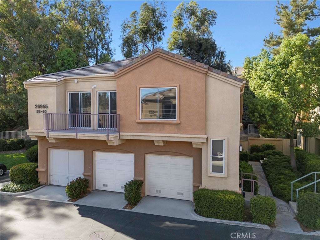 Stunning move-in ready townhome in the popular Rose Arbor community of Valencia Northbridge! This beautifully updated 2-bedroom, 2-bath home features wood-like laminate flooring, designer interior paint, healthy HVAC system, recessed lighting, ceiling fans, and custom blinds throughout. The light and bright open layout includes a gorgeous kitchen equipped with stainless steel appliances, Corian countertops, an under-mounted sink and faucet, recessed and accent lighting, and ample cabinetry. Upstairs, the spacious primary suite offers high ceilings, a large paneled-door closet, a ceiling fan, and peaceful greenbelt views. A generous secondary bedroom, full bathroom, and convenient linen storage complete the upper level. Enjoy the private, low-maintenance backyard with concrete patio, decorative rock landscaping, and artificial turf—perfect for outdoor relaxation. Additional highlights include an attached garage with tile flooring, a second detached garage, and in-unit side by side laundry. The HOA covers water, trash, patrolled security, common area maintenance, and access to the community pool and spa. Ideally located near award-winning schools, Valencia Town Center, shopping, dining, scenic paseos, and just minutes to the freeway. No Mello Roos!