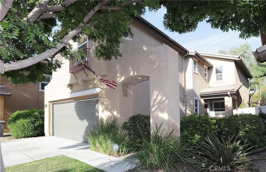 Perched in the hills of Canyon Country, this upgraded two-story home blends turnkey comfort with everyday convenience—minutes from quick 14 Freeway access and the best of the Santa Clarita Valley (parks and trails, dining, shopping, community events, and award-winning recreation). Inside, high ceilings with crown molding and abundant natural light set a welcoming tone. Thoughtful improvements include a completely remodeled upstairs bathroom with contemporary trim, luxe fixtures, and a deep soaking tub; a refreshed downstairs restroom with a new vanity and fixtures; all new elongated toilets; and a new water heater. The flexible layout features a built-in office space with extra storage, walk-in closets, and in-home laundry hookups for easy living. The expansive primary suite provides a true retreat. Outdoor spaces are dialed for low-maintenance living and privacy: premium turf in the backyard, privacy landscaping, and a full private balcony for morning coffee or what floats your boat! Front landscaping is handled by the HOA, so weekends stay free for fun. Additional highlights include durable epoxy flooring with a non-slip finish (classic palette), two-car garage plus full-size driveway, no shared walls, and a quiet cul-de-sac setting on recently resurfaced streets. Carpets are professionally cleaned yearly and the yard features a charming orange tree. The community is pet-friendly, with a low HOA, no Mello Roos and located in a cul-de-sac! Enjoy turnkey comfort, effortless commuting, and the SCV lifestyle—all at 27656 Cordovan Dr.