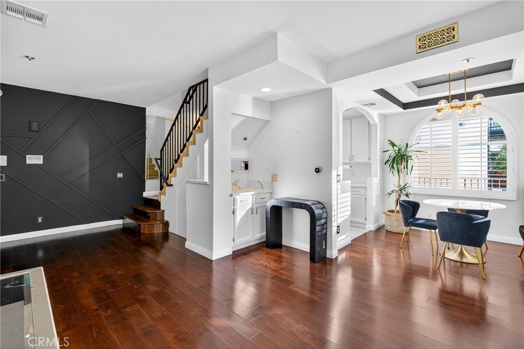 Step inside to a bright and inviting layout featuring custom wooden shutters, rich hardwood flooring, and a spacious entryway with built-in storage beneath the staircase. The home is pre-wired with a full alarm system and secured with an intercom panel and remote-controlled door access, ensuring both comfort and peace of mind.