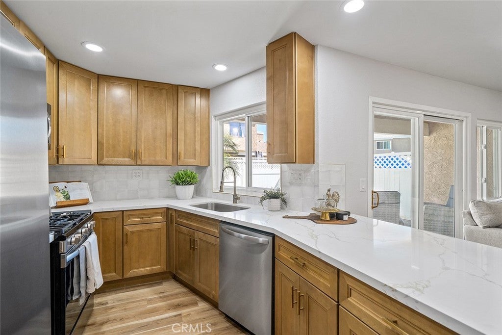 Price Adjustment...welcome to your new home, where modern design seamlessly blends with ultimate comfort. This unit has been completely updated and fully remodeled, offering 4 bedrooms and 2.5 baths. The brand-new kitchen is a highlight, featuring soft-close cabinets and drawers, an undermount sink, quartz waterfall countertops, and new appliances. Throughout the home, you'll find recessed lighting, new flooring, and multiple glass elements, including a custom glass staircase consisting of a 1/2 inch frameless, standoff system and an under-the-stairs wine wall with storage. The bedrooms are spacious, and the primary bedroom and bath are simply amazing. The primary shower boasts a custom glass enclosure with lovely accent tile, a rainfall showerhead and a handheld sprayer, along with dual sinks. All bathrooms have been fully remodeled. The backyard is very low maintenance and ready for enjoyment. The unit also includes a one-car attached garage and attached carport. This home is in a fantastic location, great school district and close to all the entertainment & amenities that the City of Temecula has to offer!