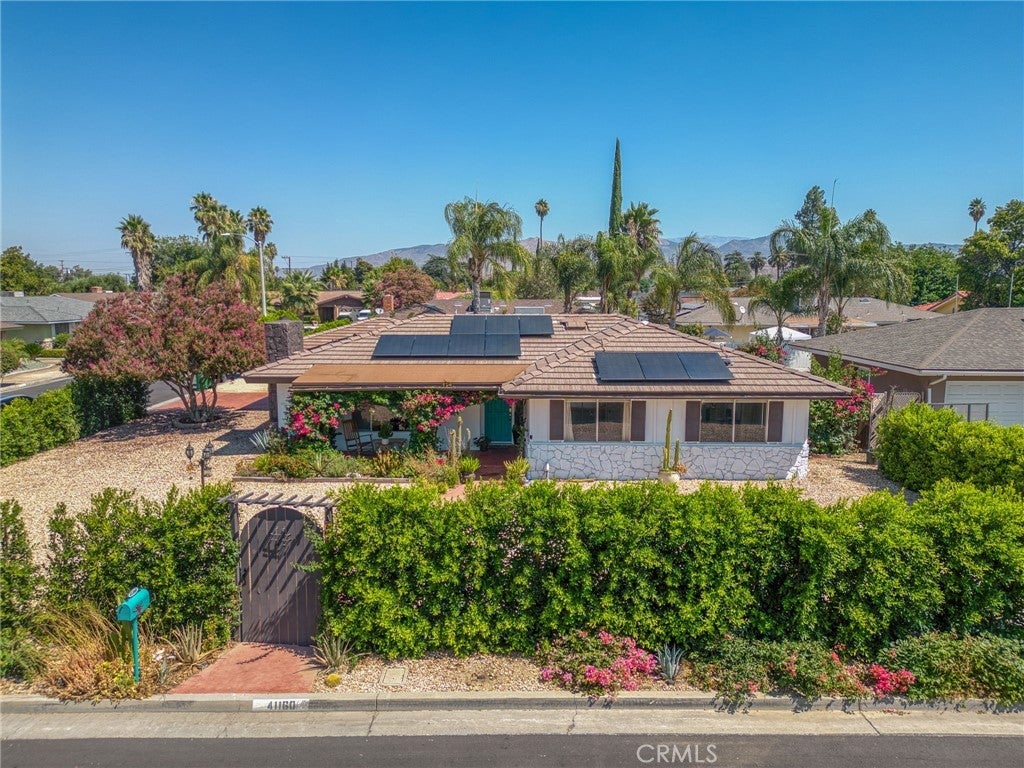 Welcome to this beautifully updated Hemet home that blends comfort, convenience, and modern upgrades. The open floor plan is filled with natural light and offers a seamless connection between the living, dining, and kitchen areas. Recent improvements include a newer roof, air conditioning system, and water heater, offering lasting value and peace of mind. The garage was in the process of being converted into a finished space with its own private entrance and bathroom, creating additional options for the future. The backyard is designed for both relaxation and entertaining, featuring a sparkling pool with spa, a covered patio, and landscaped areas that provide privacy and a welcoming atmosphere. The property is enhanced by garden flowers surrounding the home, with seasonal blooms that attract butterflies and hummingbirds, adding color and charm throughout the year. Located in a well-established neighborhood close to parks, shopping, and major roadways, the home is also just 0.1 miles from Ramona Elementary, 0.6 miles from Dartmouth Middle School, and 1.1 miles from Hemet High School. At asking price, sellers will pay off solar panels leaving you with a newer (2023) solar panel setup and a backup battery!