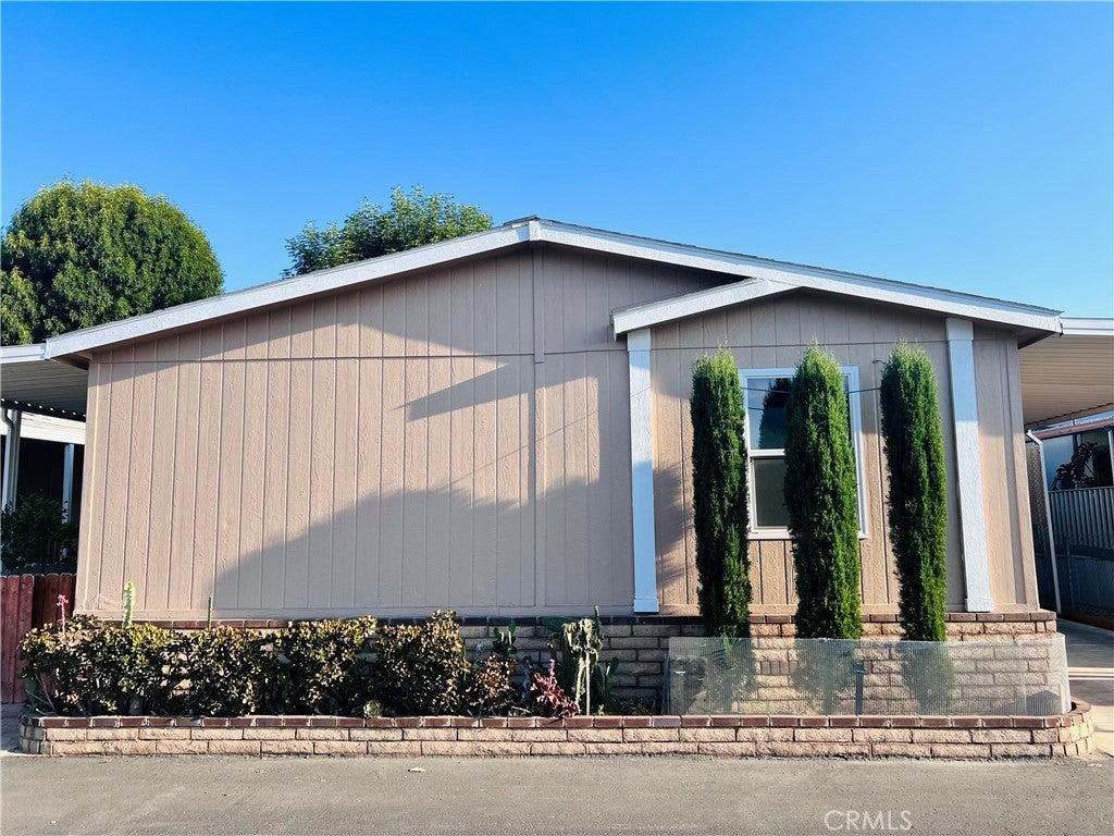 Newer mobile home built in 1999, completely renovated 10 years ago. Clean and move-in ready. Many upgrades include: laminate wood flooring, drywall and double pane windows throughout the house. Bright and airy spacious living room with high ceilings and skylights. Beautiful kitchen with quality cabinets, granite countertops, built-in stove and dishwasher. Master bathroom with newer cabinets, granite countertops, tile flooring, separate tub and shower. 2nd bathroom with quality cabinets, granite countertops, tile flooring and shower. Separate laundry room. Central air conditioning and heating. Large carport with awning can accommodate 3 cars. Concrete around the house. An oversized shed. This home is located in a quiet neighborhood. Walking distance to markets, schools, bus routes, post office, shops and more. Easy access to freeways 60, 57 and 605. ***Don't miss this opportunity