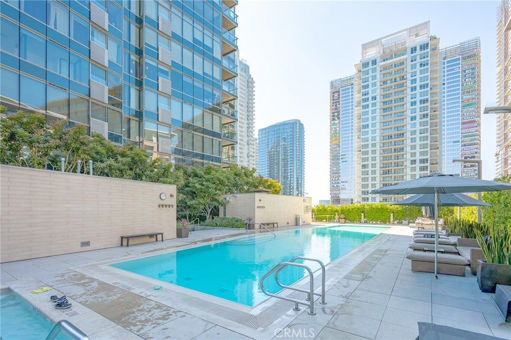 This 1-bed condo puts you in the heart of Downtown LA and offers amazing views. You’ll be within walking distance of museums, theaters, Crypto.com Arena, LA Live, Whole Foods and countless retail shops & restaurants! Plus, the EVOis a modern, stylish residential building with lots of premium amenities – including a pool, a fitness center, lounge areas, meeting rooms, a business center, grilling stations, dedicated underground parking and a spectacular rooftop deck with skyline views. HOA fee in included the water, as well as gas and internet.
